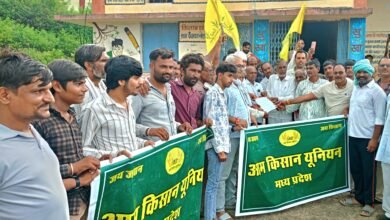 आम किसान यूनियन ने ट्रैक्टर रैली निकाल कर भावांतर योजना का किया विरोध, ग्राम सचिव को सौपा ज्ञापन।